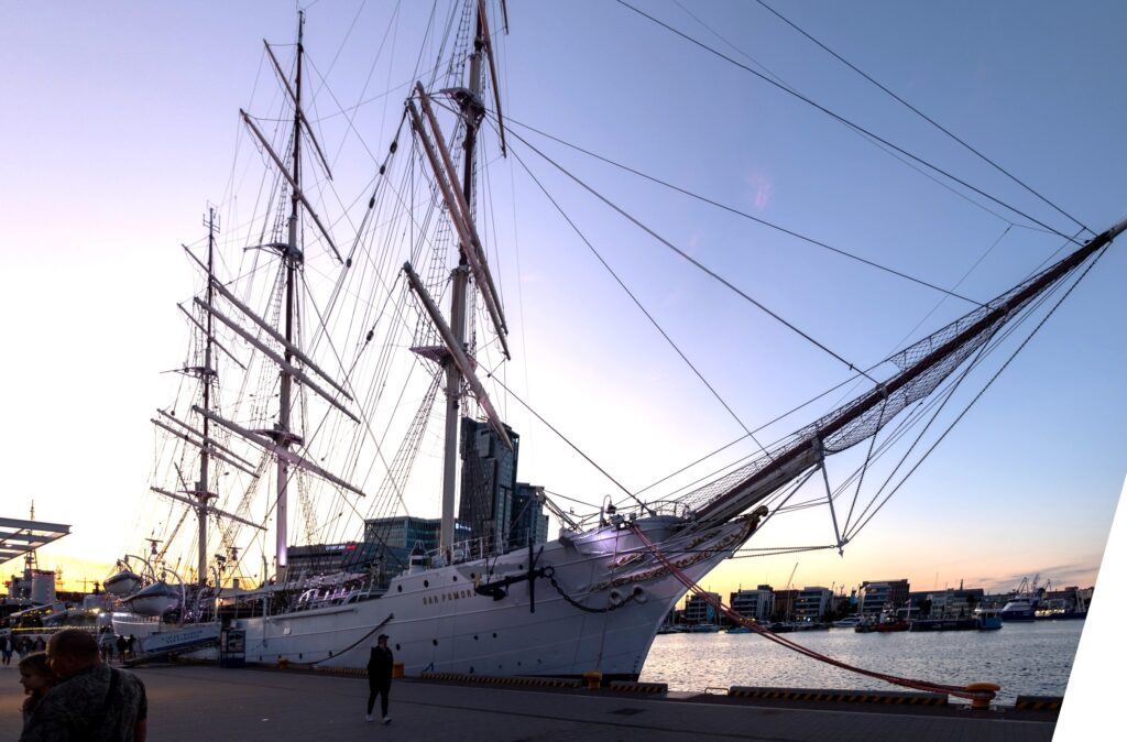 Protože se tu parkuje od 20.00 zdarma, nemuseli jsme vůbec nic řešit a zastavili jsme si přímo na nábřeží. Tady jsme si prošli bulvár a hlavně omrkli obě historické lodě – torpédovec a až absurdně bílou plachetnici, z níž  jsem byla unešena a Honza byl zase vyveden z míry při myšlence, že by na ní měl v minulosti dělat plavčíka.