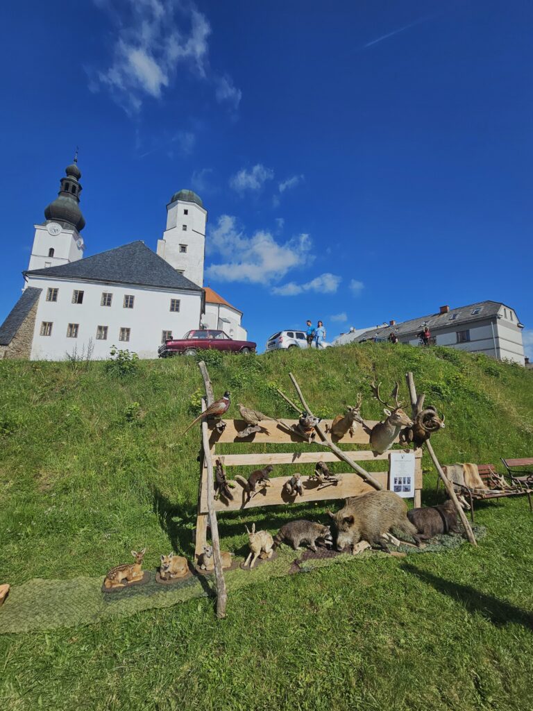A tak si po snídani proběhneme stánky, omrknem konec šermířského představení v podzámčí i koňský ráj představující 3 koně na zámeckém nádvoří, které vodí kol kol dokola s malými dětmi v sedlech, a fandíme na ukázkách z výcviku ptáků.